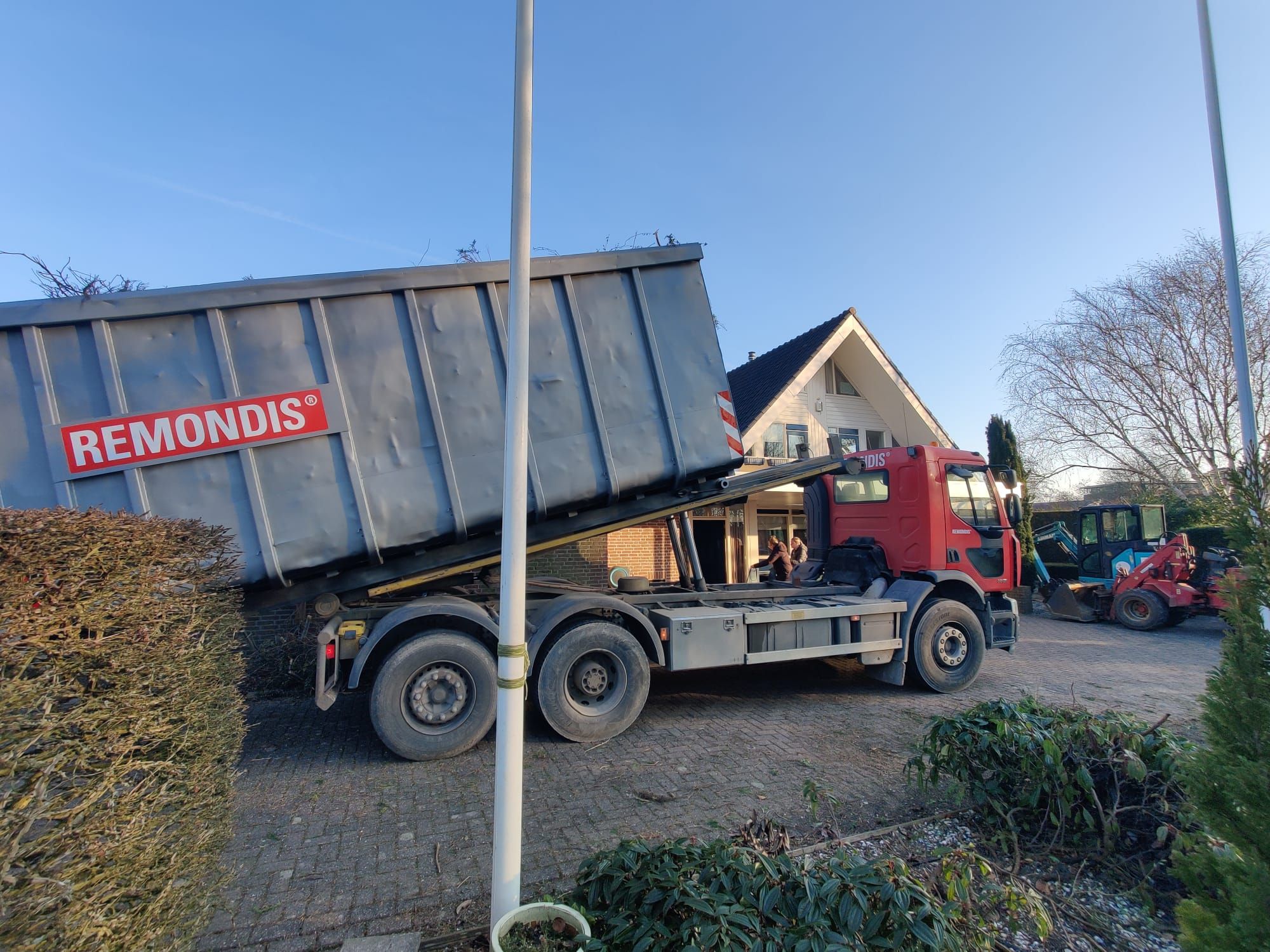 Een mooie match! Een grote container van Remondis Nederland zat bijna helemaal vol met groenafval uit de tuin bij De Bloeituin. Deze is nl. vrij gemaakt voor het realiseren van een natuurspeeltuin voor de kinderen.