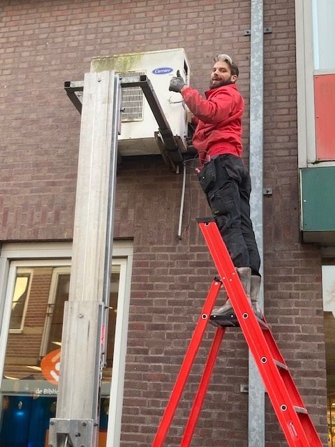Schermer Installatietechniek BV bood aan om de afgeschreven airco units van de gevel bij de Bibliotheek Hoorn te demonteren en af te voeren. Een kleine klus voor Schermer en voor Bibliotheek een groot plezier. Bij Schermer genoten ze na afloop van een heerlijke taart die door de Bibliotheek werd langsgebracht.