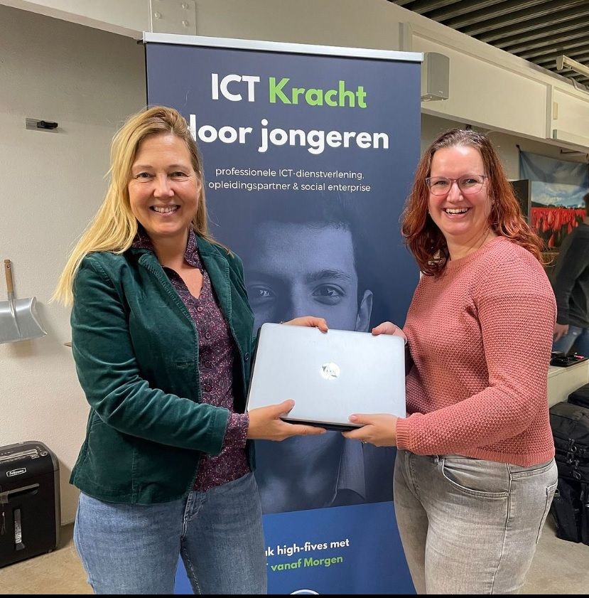 Het Juniusfonds heeft vandaag twee laptops in ontvangst genomen van ICT vanaf Morgen. Deze laptops zijn bestemd voor migranten die bezig zijn met een opleiding. Een mooie match met een mooi doel voor de laptops!