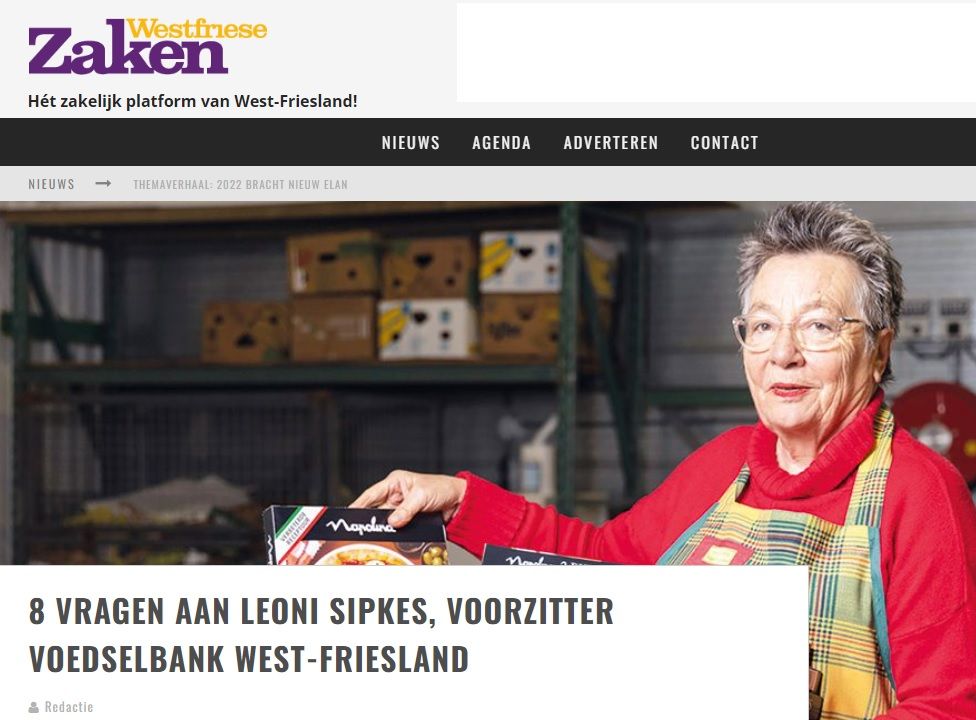 Meer bekendheid binnen Westfriesland en met name bij het bedrijfsleven matchte Westfriese Zaken. Een mooi online artikel met 9 vragen aan Leonie Sipkes, voorzitter van de Voedselbank Westfriesland.