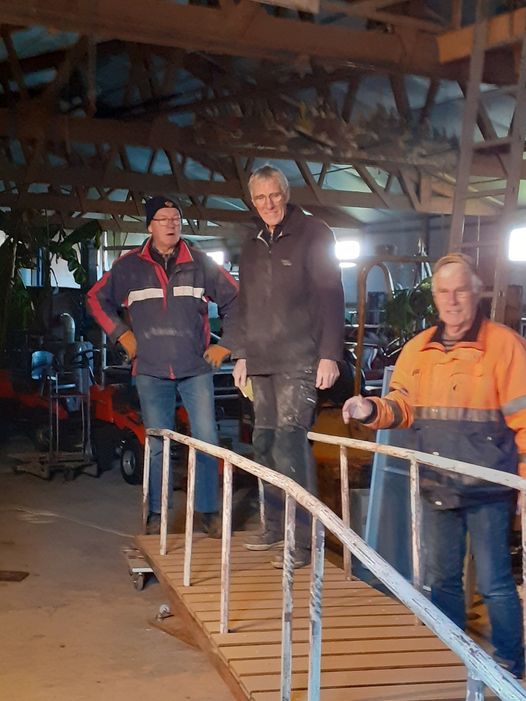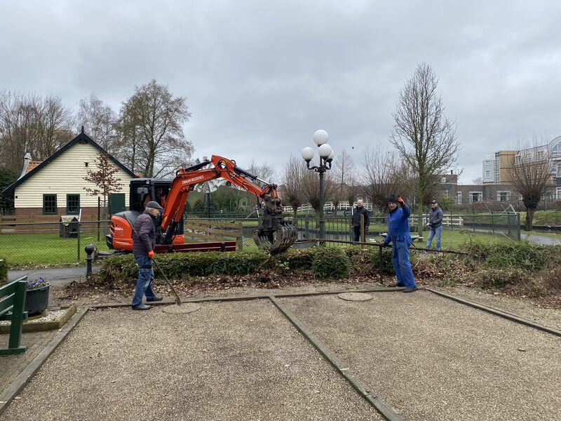Het kraantje van Loonbedrijf Zwaan Wijdenes deed het grove werk en de mannen van Soci-com zorgde onder andere voor het afvoeren van het puin. Na afloop deden ze uiteraard nog even een potje jeu de boules en was er verse kibbeling. Met elkaar was het een nuttige en gezellige ochtend!