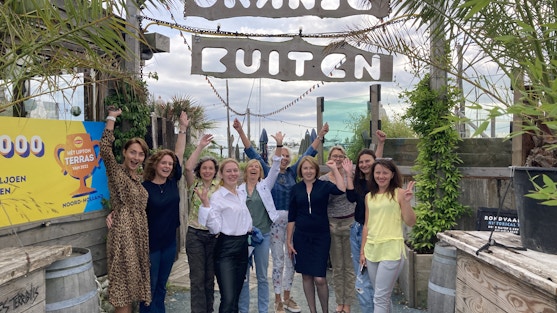 ‘Een cappuccino en een worteltaart.’ De eerste officiële bestelling in het Nederlands is voor de Oekraïense instroomgroep een feit. Een groep van vijf Oekraïners zit samen met vijf taalvrijwilligers op het terras van Strandpaviljoen Oranje Buiten in Hoorn. ‘We hebben gisteravond tijdens de les de menukaart doorgenomen. Vandaag kunnen ze het geleerde in praktijk brengen’, vertelt Masjenka Ruiter, een van de taalvrijwilligers en eigenaresse van Oranje Buiten.