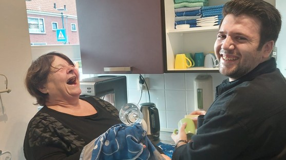 Fethullah wil zich vooral ontwikkelen in de Nederlandse taal. Fethullah: ‘Twee keer per week is hier een koffieochtend. Ik ontvang op één ochtend de bezoekers, geef ze koffie of thee en zorg er ook voor dat alles weer wordt opgeruimd. Natuurlijk probeer ik ook met de bezoekers Nederlands te praten, want ik wil mijn Nederlands verbeteren. En dat gaat ook steeds beter. Ik leer veel door te praten met de bezoekers, maar ook met de andere vrijwilligers. Zoals tijdens het afwassen. Dan leer ik van vrijwilliger Ria nieuwe woorden zoals kopje, afwasmiddel en het verschil tussen een theedoek en handdoek. Ik voel me hier heel welkom en ik vind het erg leuk.’