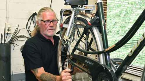 Maar de fietsen lieten Mans niet los. Na zijn werk als postbode is hij altijd in de weer, sleutelen en repareren. Voor het goede doel, uiteraard. ‘Gezinnen die van een klein budget moeten rondkomen, hebben meestal geen geld voor een mooie passende kinderfiets. Die kunnen zich bij ons melden, bijvoorbeeld via stichting Leergeld, en dan regelen wij een knappe fiets voor ze.’ En die fietsen komen uit zichzelf bij Mans terecht, vertelt hij. ‘Mensen komen ze gewoon brengen, in alle soorten en maten. En overal is vraag naar. De laatste tijd zijn vooral damesfietsen populair, daar willen jongens ook wel op rijden. Kennelijk maken ze daar indruk mee op de meisjes!’