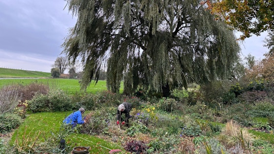 De lente en de zomer zijn drukke tijden voor mensen met een tuin, maar inmiddels gaan we richting winter en wordt alles wat kaler en stiller. Nee hoor, niet bij Esther. “Zelfs nu bloeit er nog van alles”, vertelt ze. “En als ik, zoals afgelopen weken, druk ben geweest met mijn werk, mis ik mijn tuin echt. Ik voel dat ik het nodig heb om buiten bezig te zijn, mijn handen in de aarde te steken. Gelukkig komt Thea vanmiddag. Er is nog heel wat te doen, dus fijn dat we weer lekker samen aan de slag gaan.”