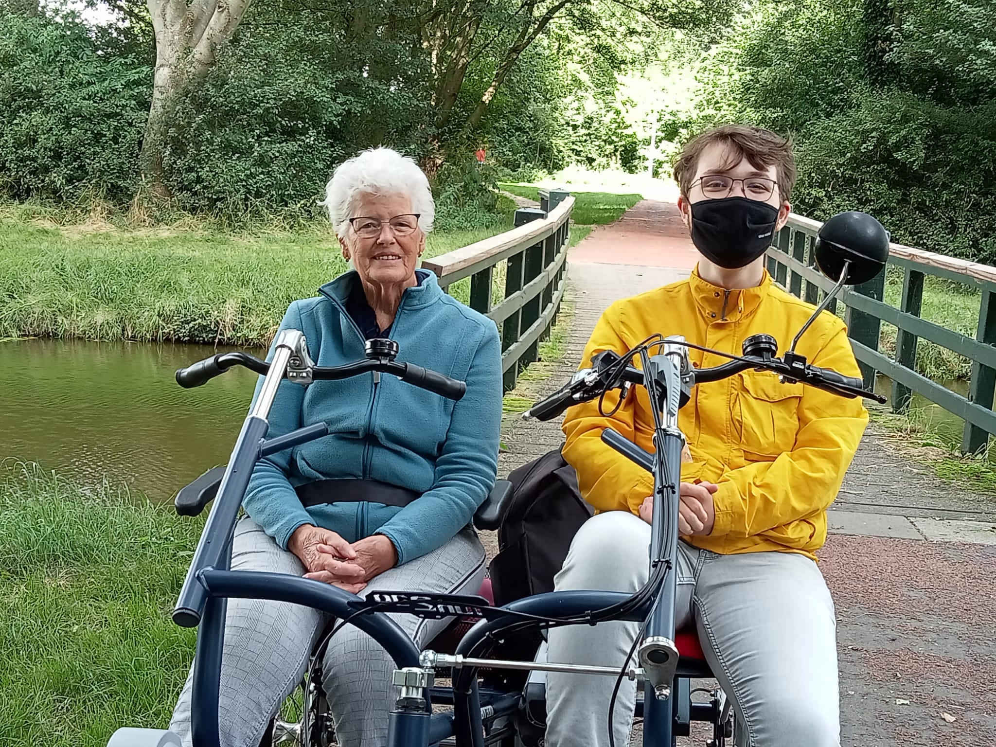 Want dat was de grote wens van mevrouw: een fijne wandeling. In de rolstoel gaat dat prima. Liesbeth maakt flinke wandelingen met haar, soms wel tien kilometer. ‘Halverwege gaan we op een bankje zitten in de zon, even kletsen, en verder wandelen we lekker buiten. Soms gaan we even langs de supermarkt, maar vaker lopen we gewoon een rondje. Zij vindt het echt heerlijk, een frisse neus halen. Regent het? Ik heb een grote paraplu, zegt ze dan, dus we kunnen evengoed op pad.’