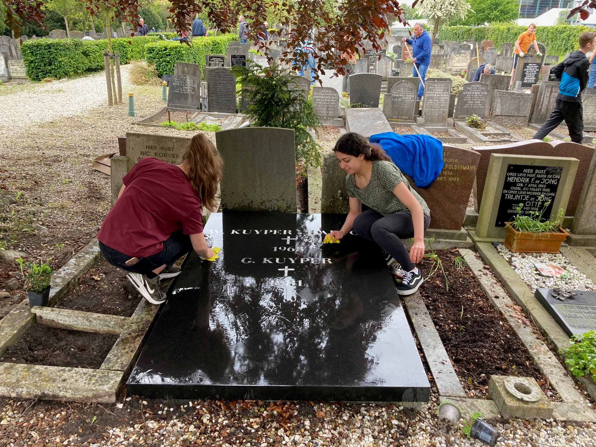 Ook Mila loopt een dagje mee bij Noppes: “Ik hou van tweedehandskleding! Helaas ben ik met mijn 15 jaar nog te jong om hier te kunnen werken, maar door NLdoet kan het nu toch! Super leuk!” Bij Begraafplaats Het Keern in Hoorn zijn maar liefst 30 vrijwilligers bezig met tuin- en schoonmaakklusjes. Hier heerst zeker geen grafstemming: jong en oud werkt met veel plezier aan het opknappen van de begraafplaats. Luna en Nadia doen dit als maatschappelijke stage. Nadia: “Ik hou van schoonmaken, dus vind dit leuk om te doen. Maar ook dankbaar. Als ik hier kom te liggen, zou ik het ook fijn vinden als iemand dit voor mij doet.”
