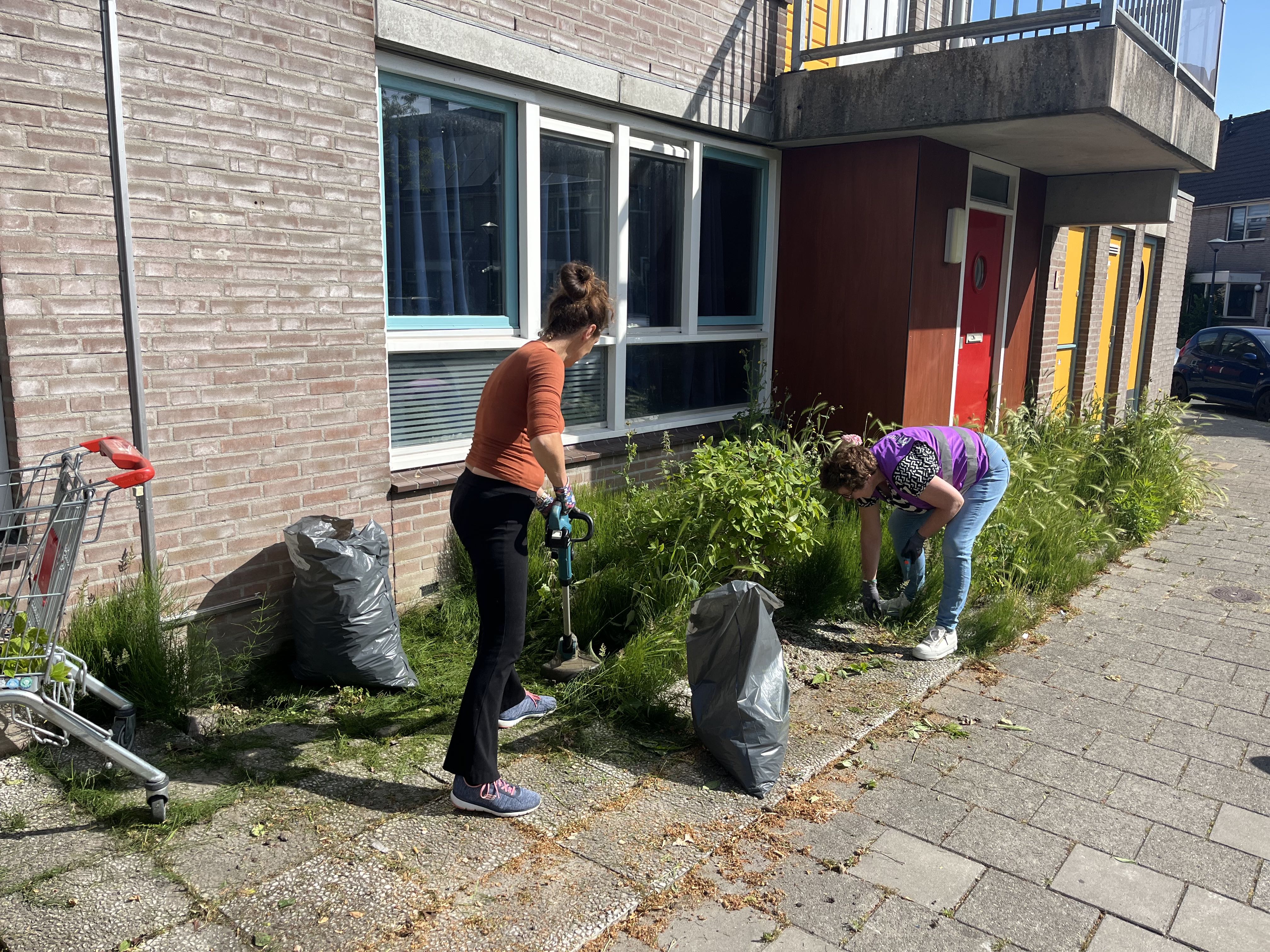 Voor veel medewerkers was het een welkome afwisseling van het dagelijkse werk. Marije Zuurbier en Margreet Boots maakten bij DnoDoen de voor- en achtertuin weer netjes. Marije: “Ik zit al dagelijks achter het beeldscherm, dus daarom heb ik deze klus gekozen. Even lekker buiten bezig zijn en mijn hoofd leeg maken. Groen geeft rust!” Ook Margreet was enthousiast: “Ik werk al in de wijk, maar dit is weer een heel andere manier om iets bij te dragen.” Marissa Hartlief van DnoDoen was blij met het resultaat: “Het onkruid stond torenhoog en het was al lang een doorn in het oog, maar we hadden er gewoonweg geen tijd voor. Dankzij de hulp ziet het er weer netjes uit, echt heel blij mee!”